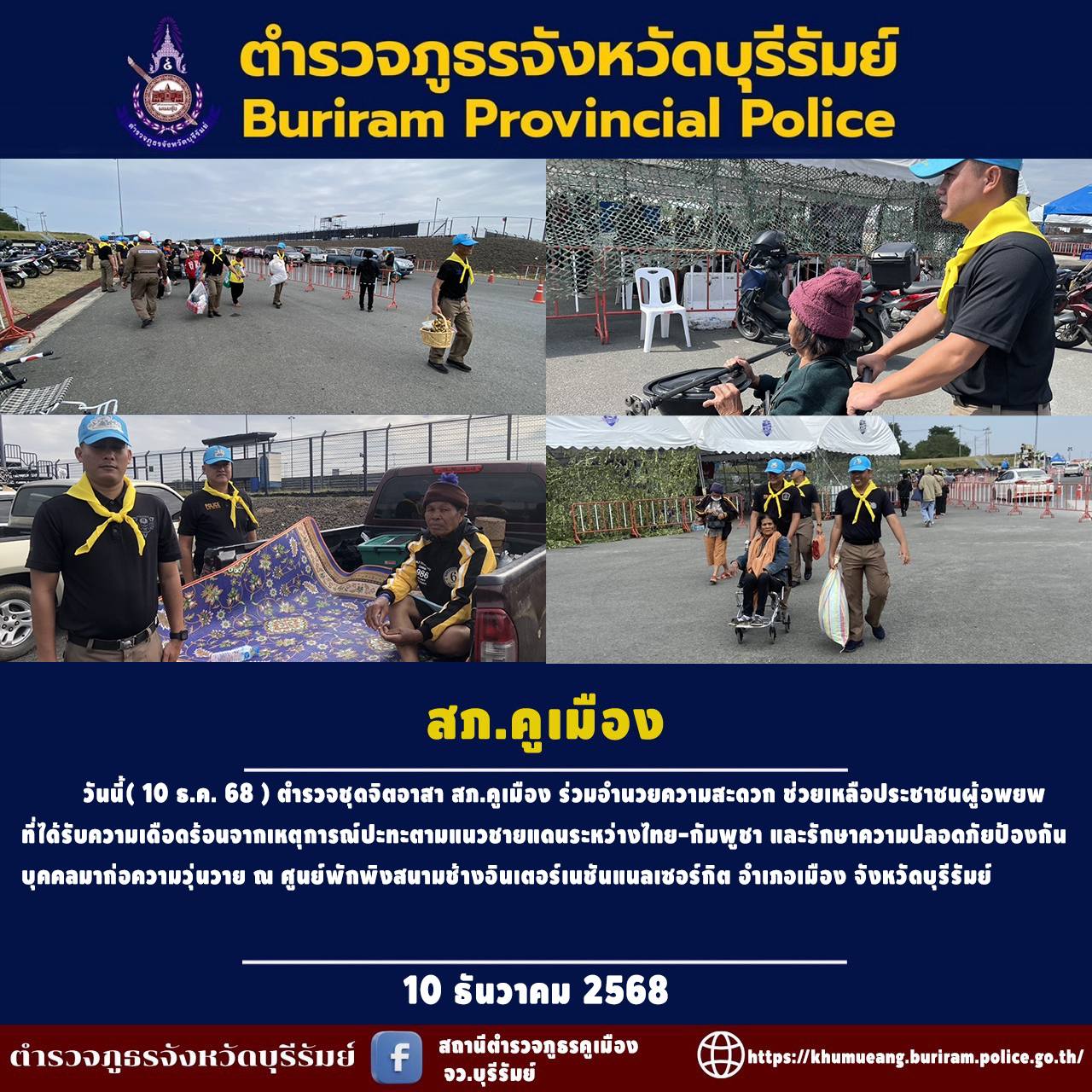 10 ธ.ค.68 ตำรวจชุดจิตอาสา สภ.คูเมือง ร่วมอำนวยความสะดวก ช่วยเหลือผู้อพยพที่ได้รับความเดือดร้อนจากเหต